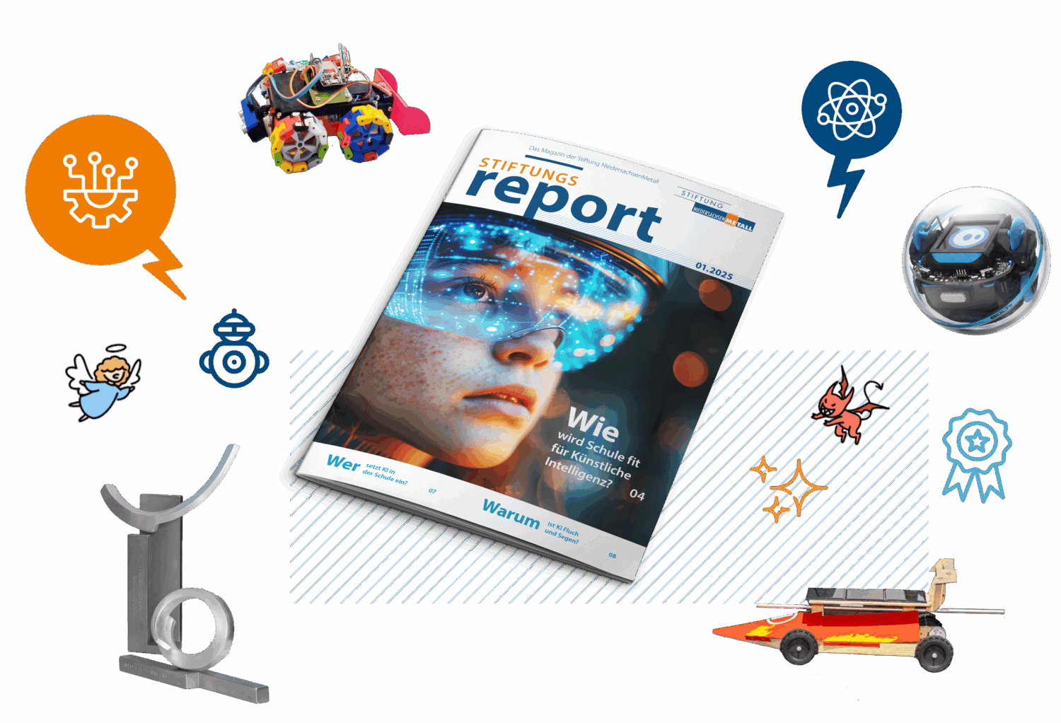 Der Stiftungsreport dokumentiert dreimal im Jahr die Arbeit der Stiftung. Das Ziel: Kinder und Jugendliche für die naturwissenschaftlichen Fächer (MINT-Fächer) zu begeistern. Der ein oder andere denkt vielleicht eher mit Schrecken an den eigenen Mathe- oder Physikunterricht zurück. Beim Durchblättern des 12-seitigen Reports stellt man allerdings fest, wie vielseitig und faszinierend dieses Thema sein kann.